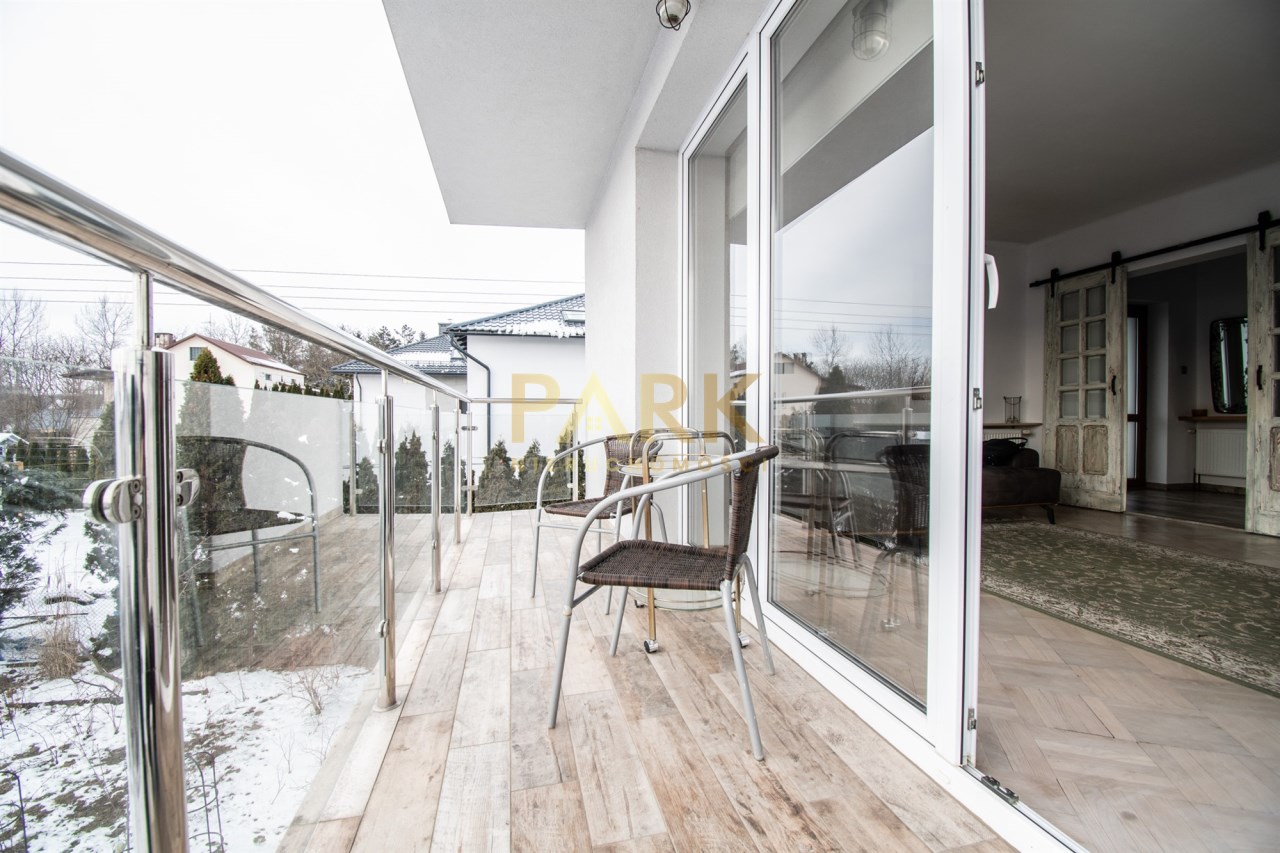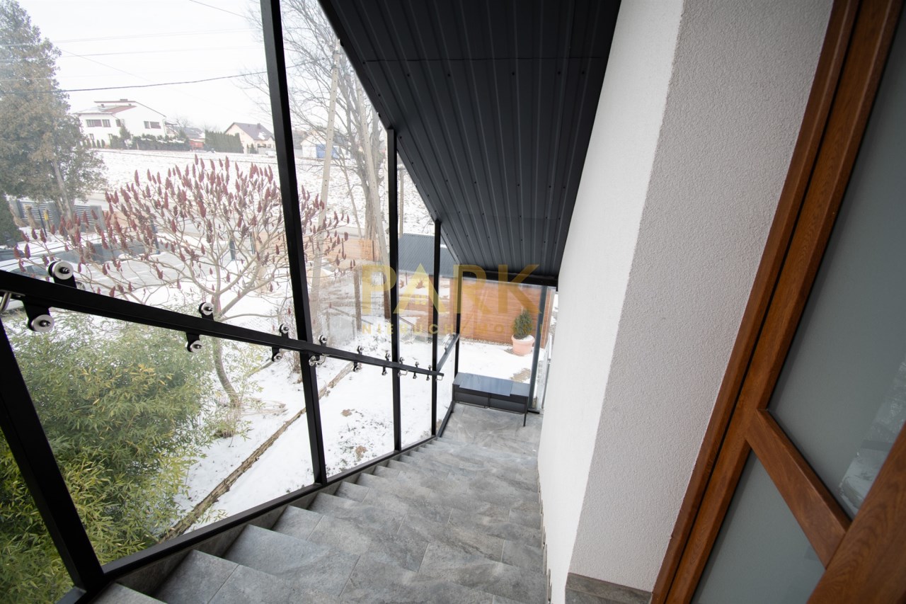 Wejście do nieruchomości prowadzi przez elegancką, przeszkloną klatkę schodową z przesuwnymi panelami, co zapewnia wygodę oraz dodatkową ochronę przed warunkami atmosferycznymi. Nieruchomość posiada dwa balkony.